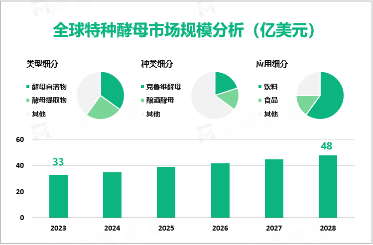 特种酵母是一种天然配料,可提高食品和饲料产品的营养成分,并提供浓郁的口感和风味,由于其营养价值和抗氧化特性对健康有益,因此越来越受到消费者的青睐。2023年全球